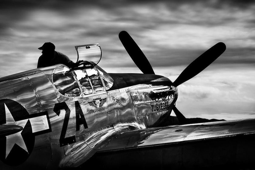 This photo also conveys tangibles. Aircraft metal. Leather bomber jacket. Can you not just touch those contrasting elements?