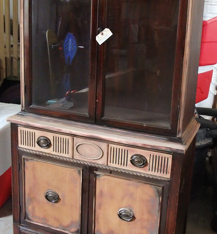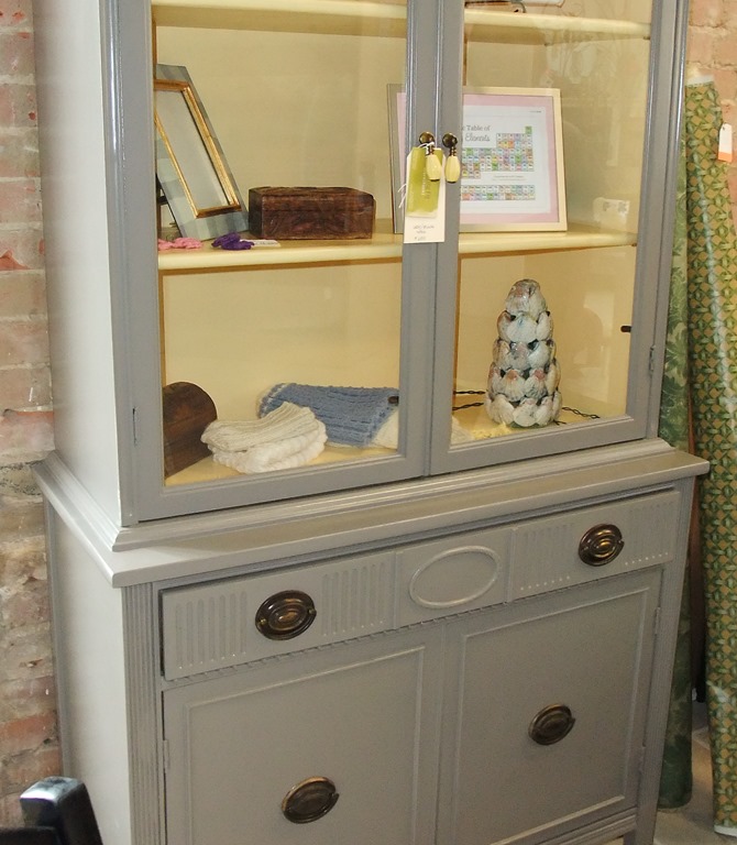 Months later, I came across the old hutch (on right) and brought it home. Months after that, the old hutch became gray and yellow. And this was a beginning… The Fig’s first piece.